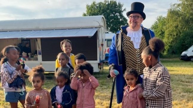 Han var selv til forestillingen fredag 16. juni i Vedbæk og glædede sig over, at hans donation bragte sig megen glæde og morskab hos gæsterne.