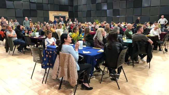 150 ukrainere og frivillige spiste påskemiddag sammen søndag den 24. april. Påsken er den største højtid i den ukrainsk-ortodokse kirke og lige så vigtig som julen er i Danmark.