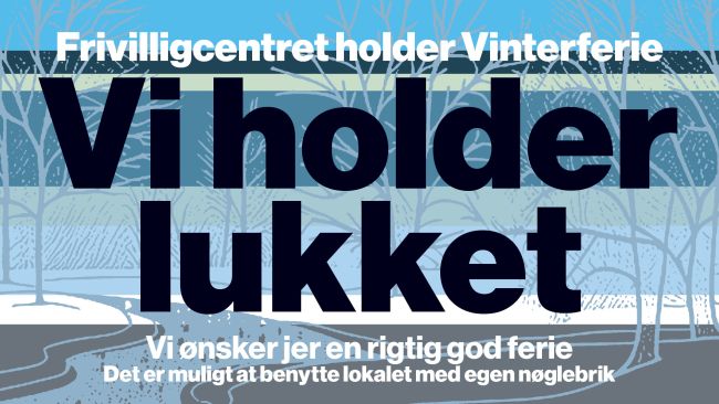 Frivilligcentret holder lukket, Vi åbner igen mandag den 19. februar. Foreningerne har adgang med egne nøglebrikker.