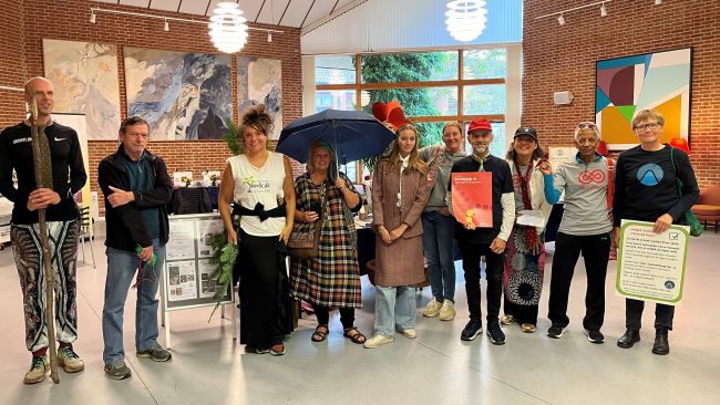 Det blev sådan en dejlig dag med masser af klimakloge ord, bæredygtige bevægelser og højt humør. Foreningerne og Frivilligcentret inviterede borgerne til at omstille i praksis med tøjbytte, reparationer af tøj og ting. Der var tips til at bruge naturens spisekammer og rykke træningen ud i skoven og ideer til hvordan vi kan indrette vores lokalsamfund, så det at dele er menneskets første valg og livsstil.